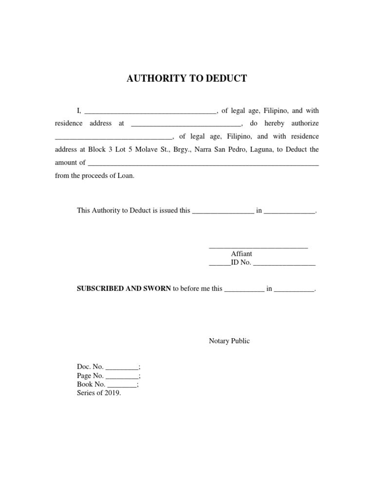 Authority to deduct sample letter. An authorization letter for a bank should be short and precise, stating the reason for writing the letter and the authorization details of the person. Select the document you want to sign and click upload. Keep the letter precise and short.